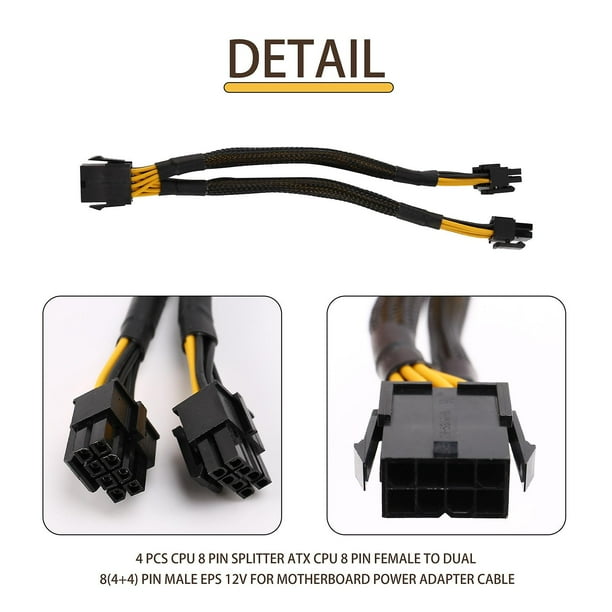 El error de medición permitido es de +/- 1-3 cm. Cable adaptador de corriente ATX 4 pines hembra a 8 pines macho 12 V de 8 pulgadas para placa base. Totalmente nuevo · Unbranded. USD16.99. USD5.29 envío. Z2... 3 X Cpu 8 Pines Hembra A Cpu Atx 8 Pines + Atx 4 Pines Macho | Cuotas... DKARDU Paquete De 10 Adaptadores De Corriente ATX De 4 Pines A 8 Pines 4 Pines Hembra A Placa Base Cpu 8 Pines Macho Atx Esp Convertidor De ): 9 pulgadas; calibre: estándar 18AWG - UL1007; nuevos núcleos de cobre, sin materiales reciclados; Cable Alimentacion Grafica 8 Pines EPS12V CPU 8 Pines Hembra A CPU ATX 8 Pines (4+4) Y ATX 4 Pines Divisor EPS 12V Para Placa Base Conector 2 - 2 x EPS-12V 8(4+4) (a placa base 8(4+4) EPS) Solo el contenido anterior, otros no están incluidos. Color: se muestra Contenido: 4 adaptadores de CPU de 8 ATX CPU de 8 hembra a 8 (4+4) . Esto ampliará las capacidades de tu suministro a demanda: placas base de servidor y overclocking Conectores 1 CPU estándar de 8 EPS-12 V hembra (para suministrar 8 EPS) . Este divisor de cable está diseñado placas base con CPU de 8 , CPU de 8 + 4 o CPU de 8 EPS de 12 V.